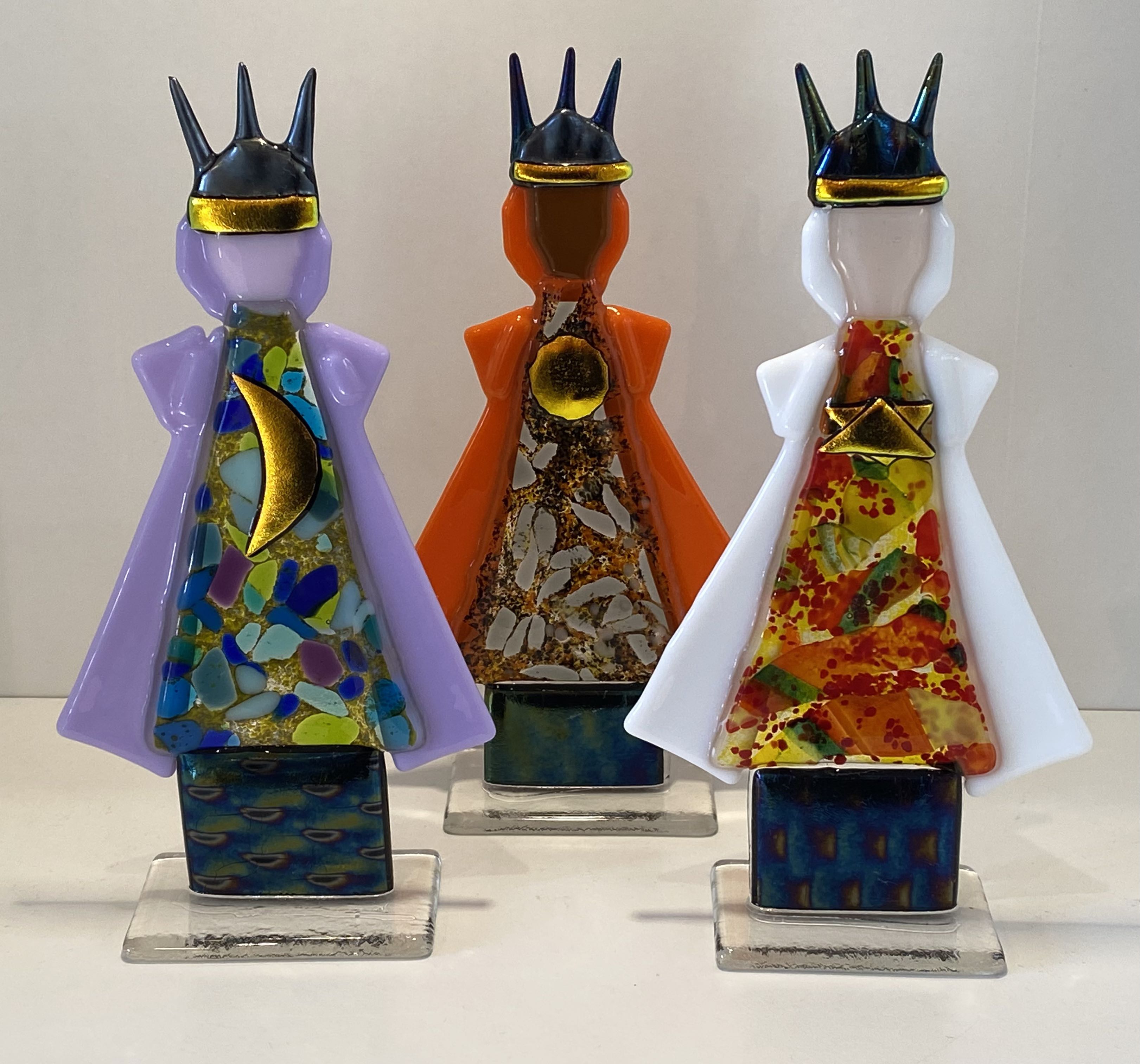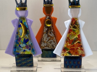 Når jeg laver billeder i glas, så bruger jeg mange forskellige teknikker. De kan være malede med glaspulver, men ofte laver jeg et billede eller en skål som mosaik.